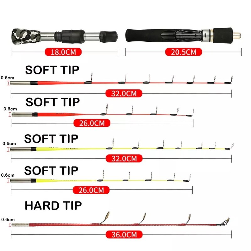 Długość: Wędkarskie pręty lodowe są zazwyczaj krótsze od zwykłych, a ich długość wynosi od 18 do 48 cali.Krótsza długość umożliwia łatwiejsze obsługiwanie w ograniczonej przestrzeni schroniska do połowów na lodzie.